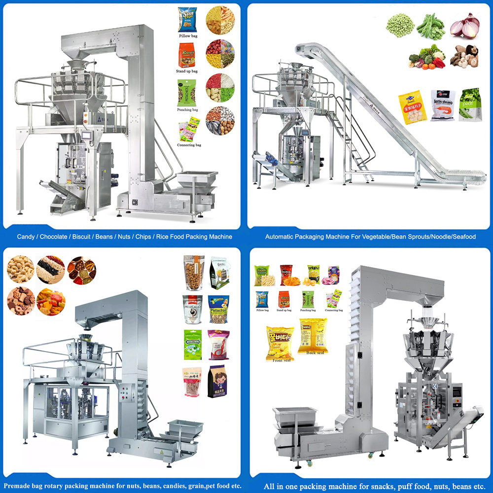 Fully automatic multihead weigher back seal packing machine multi-function crackers chip vertical ffs packaging machine