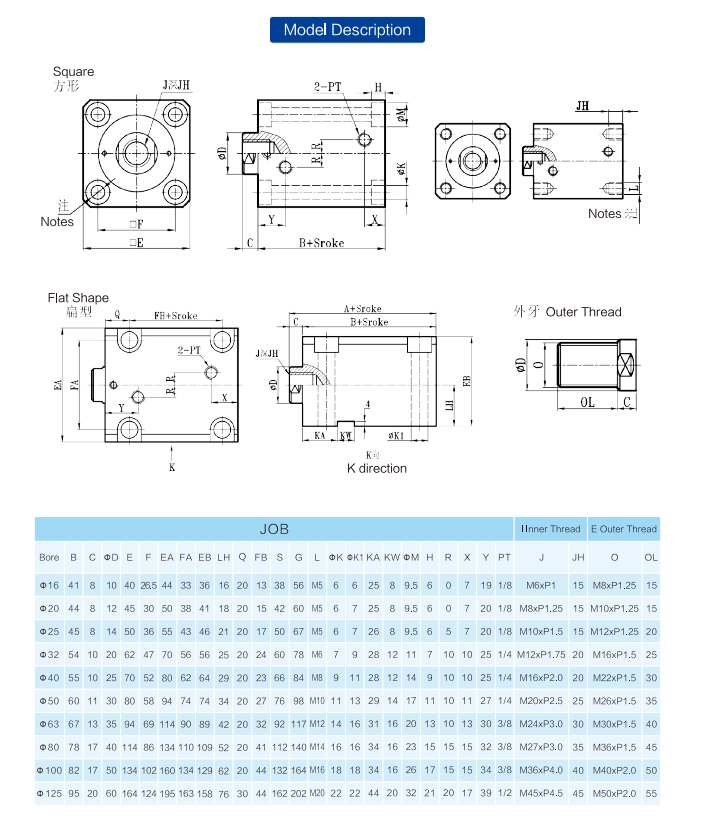 piston rods, and seals, which has advantages over the installation space requirements of the standard rod type oil cylinder. The material is made of HT300 or 45 # copper or special steel that are commonly used in various light industries such as plastic molds and precision mechanical equipment.