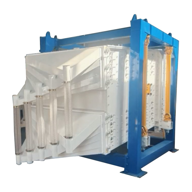 After the square gyratory screen is started, the shaking body of the screen machine, that is, the screen box, moves back and forth under the action of inertial force, and the screen box drives the screen surface to shake periodically, so that the materials on the screen surface 1 with the screen box-making directional jumping movement. During this period, the material smaller than the screen surface aperture falls to the lower layer through the screen aperture and becomes the material under the screen. The material larger than the screen surface aperture is discharged from the discharge port after continuous tumbling and jumping movement, thus completing the screening work.
