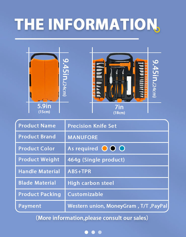 A:Hangzhou Manufore Industry Co., Ltd. is a trading company which focuses on R&D, sales and service while our wholly-owned associated factory Shangyu Zhaofeng Tools Co., Ltd. specializes in manufacturing various kinds of cutting knives, scrapers and cutter sets etc.