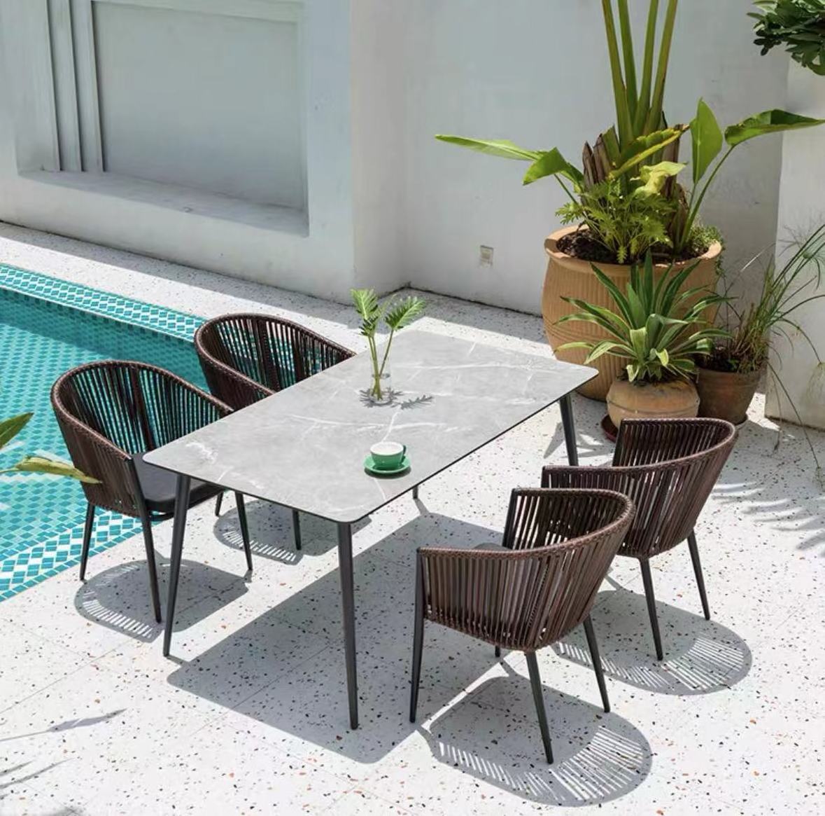 rattan garden furniture outdoor dining table and chair set brown
