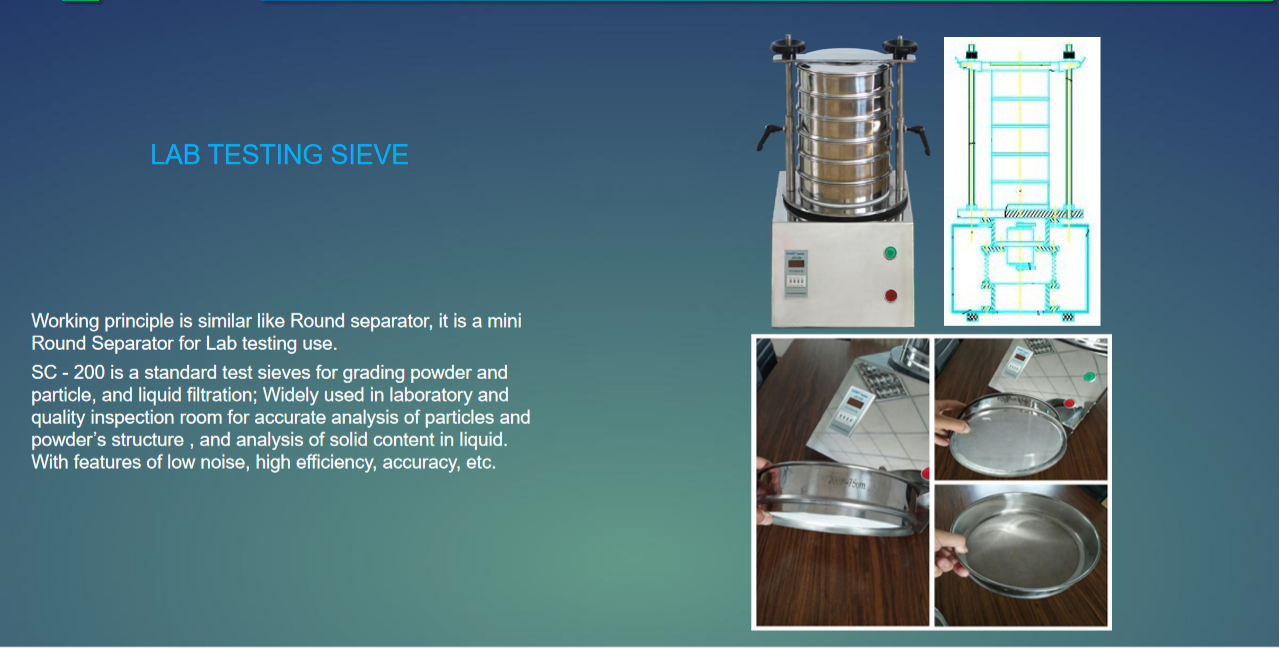 Our main products are three dimensional vibration sieve, linear vibrating screen, ultrasonic vibrating screen,