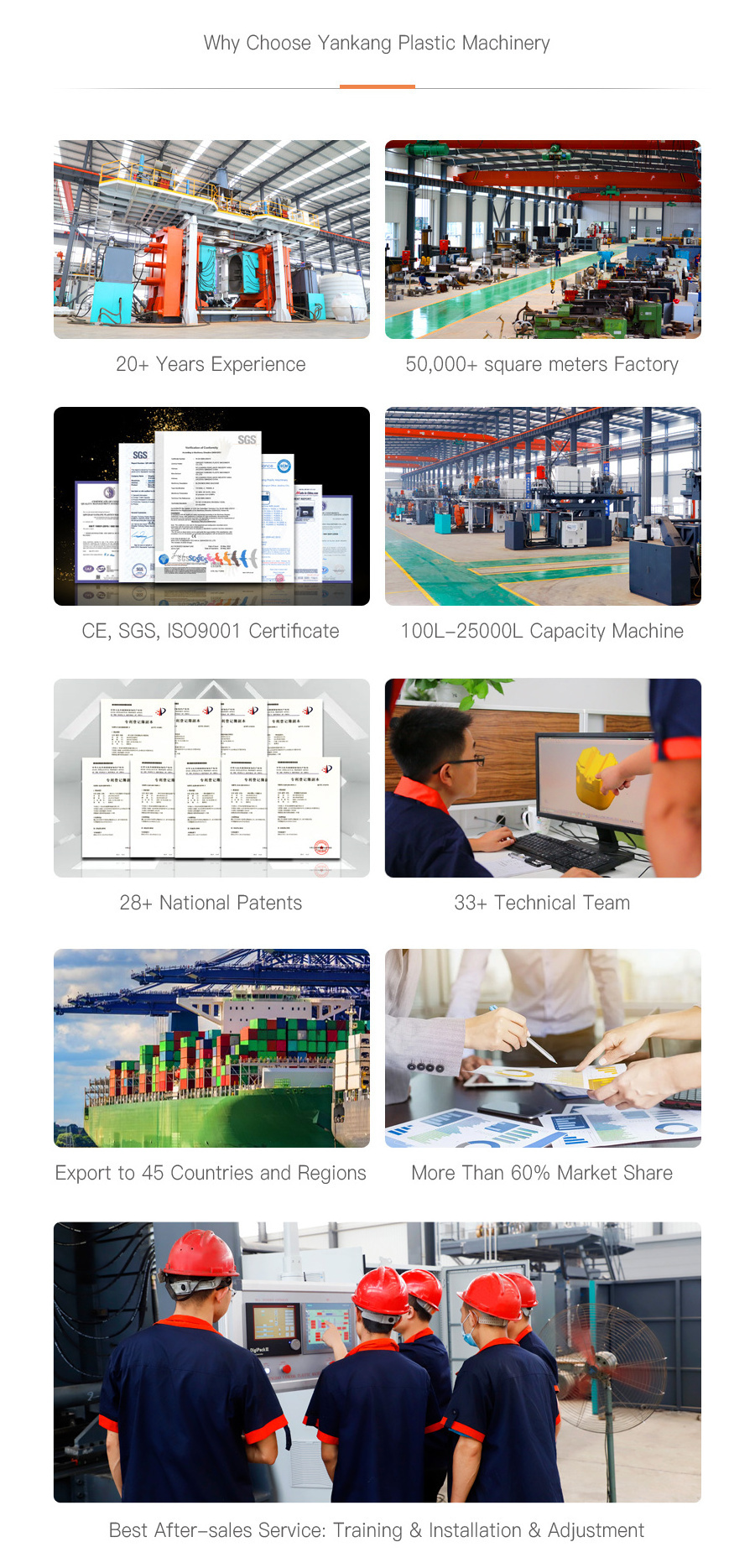 Qingdao Yankang Plastic Machinery Co., Ltd. is the largest professional blow molding machine integration enterprise in China, including product research and development, production, sales, and after-sales service. It is the pioneer and leader of the large blow molding machine. The company has its own professional research and development base.