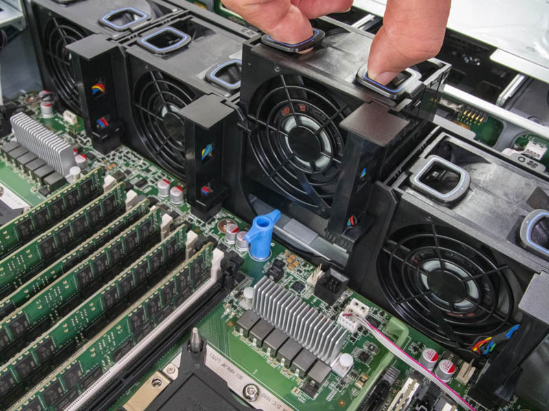 Inside the Inspur Systems NF5280M5 is a fairly standard layout for 2U servers. Storage is in the front of the chassis, there is a fan partition in the middle, followed by CPUs, then I/O and power supplies.