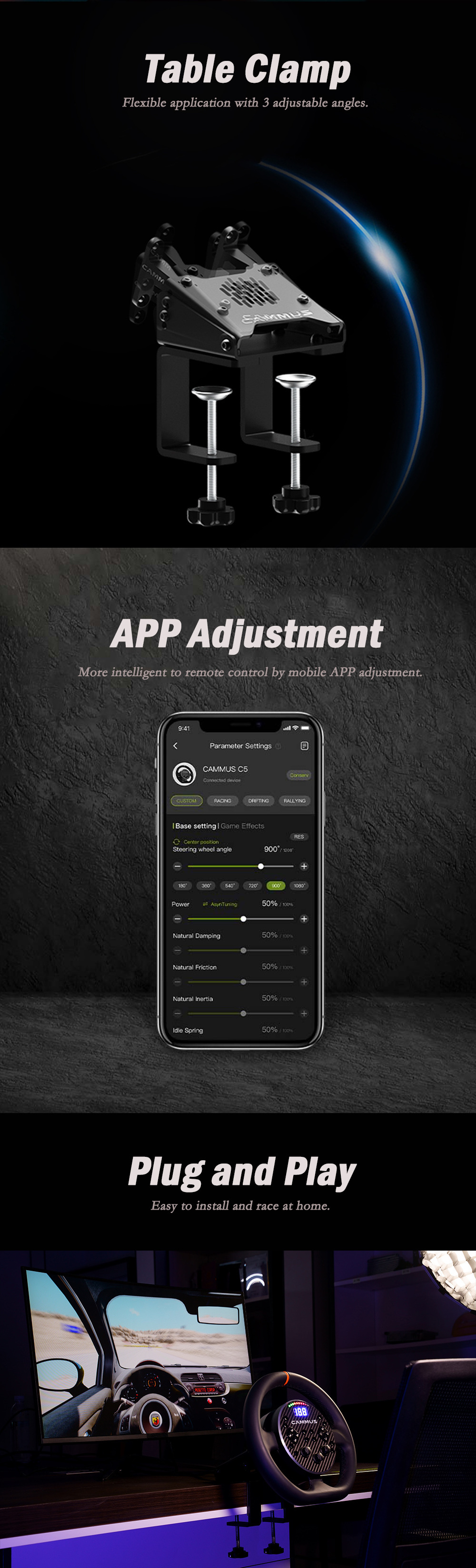 CAMMUS Car Racing Driving Simulator Direct Drive Steering Wheel and Pedals