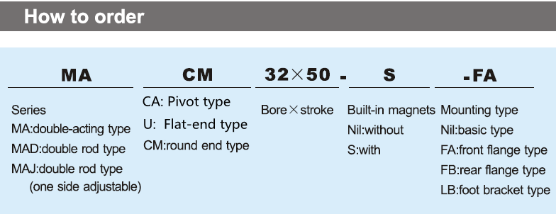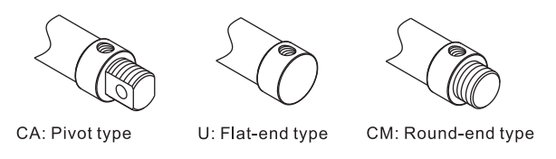 4.Three kinds of back cover type . CA: Pivot type, U: Flat-end type. CM: Round-end type.