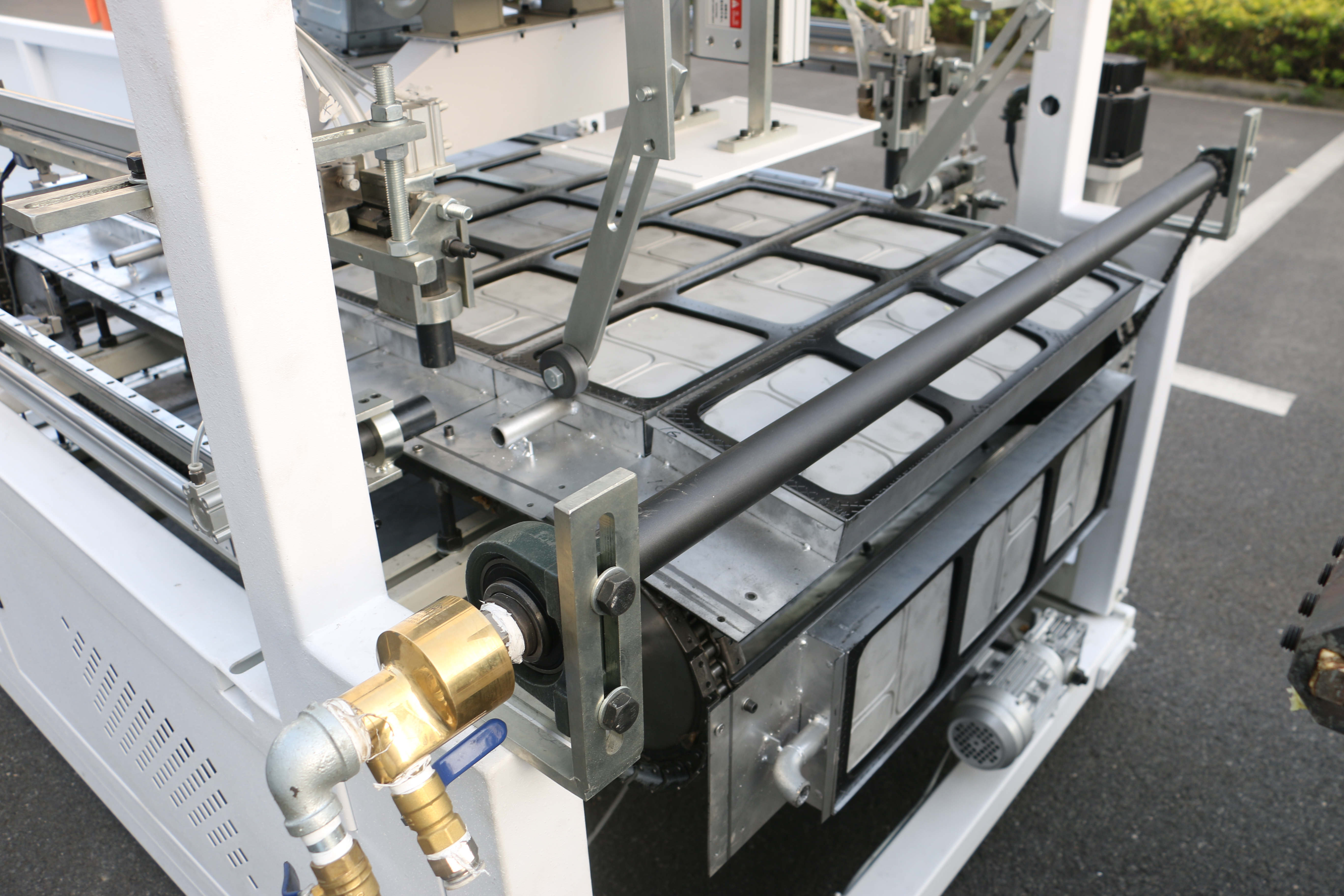 2) The automatic lifting and feeding system is safe and labor-saving. The temperature control system of the plate-type upper and lower preheating device is stable to ensure uniform heating. The punching and punching knives are durable and free of burrs. The high pressure cutting laser knife has low cost and good effect. The mold replacement is simple. The host adopts frequency conversion adjustment. Speed running smoothly.