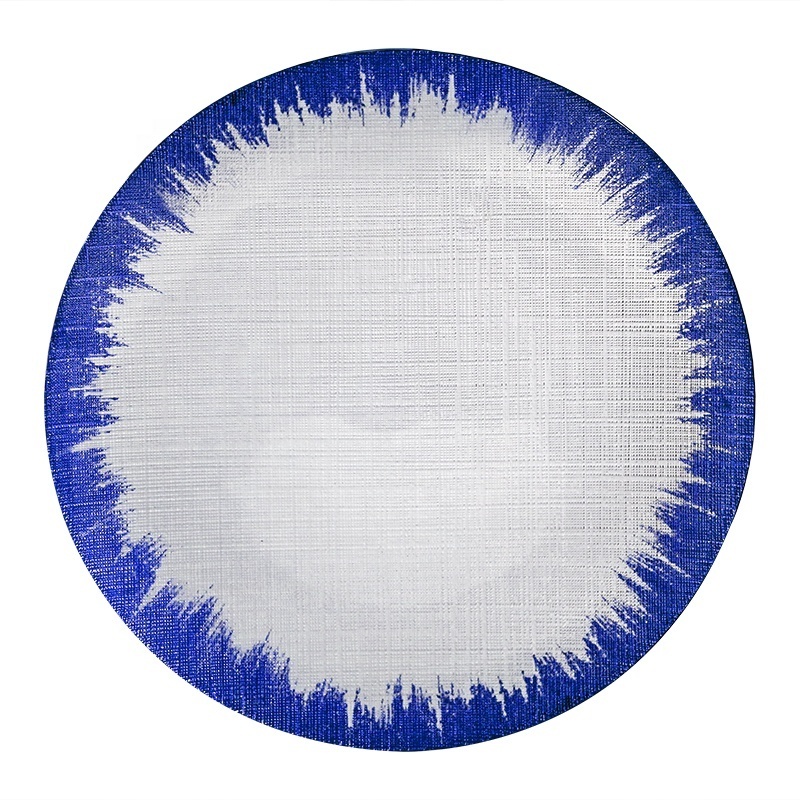 Gold rim glass charger plates beaded pearl plate transparent glass plate