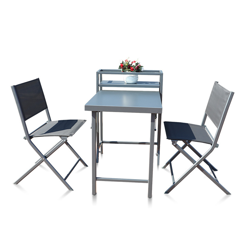 This balcony furniture set is a real space-saving wonder for any balcony! The set includes two folding chairs and one table with flower holder.