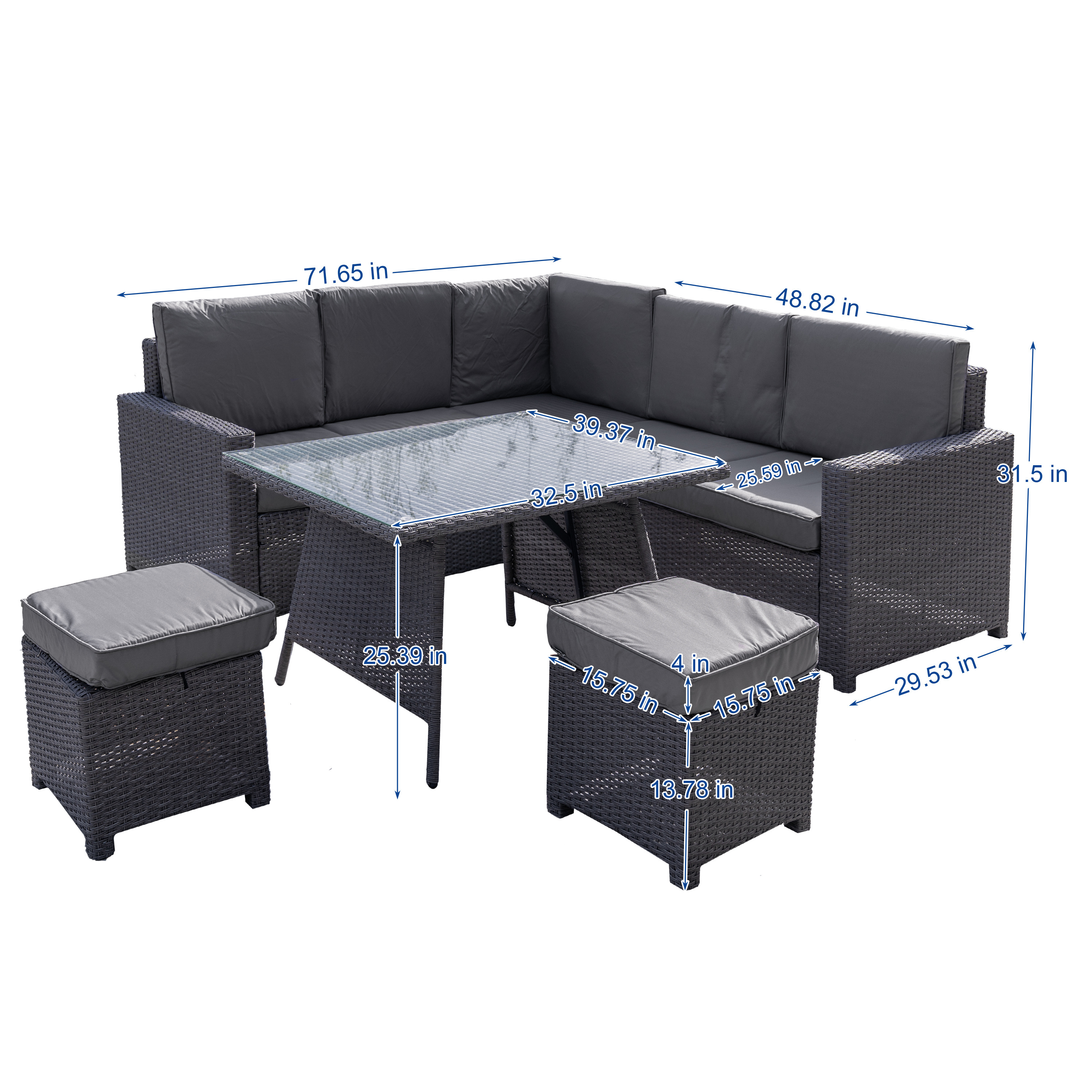 Outdoor 5-piece Patio Sectional Sofa Set garden poly rattan furniture set with glass table