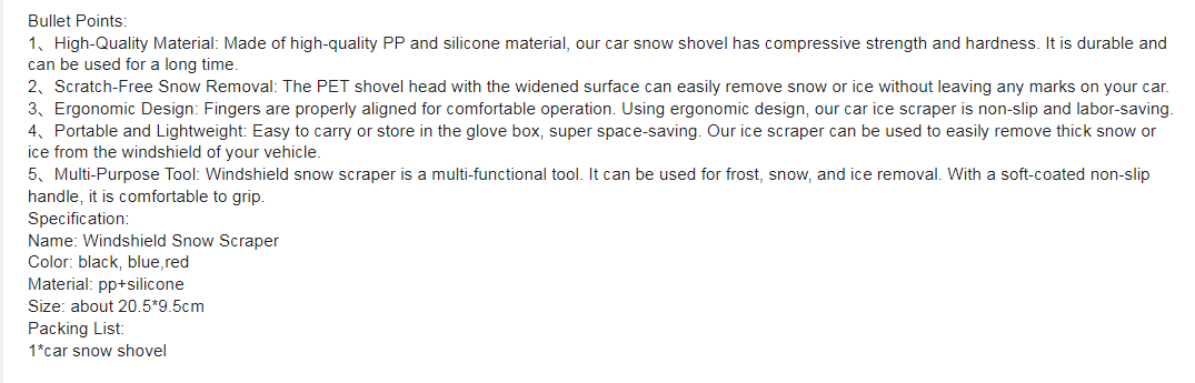Snow Shovel Durable And Smooth Silicone Anti-Slip Car Vehicle Ice Scraper Convenient Windshield Window Frost And Snow