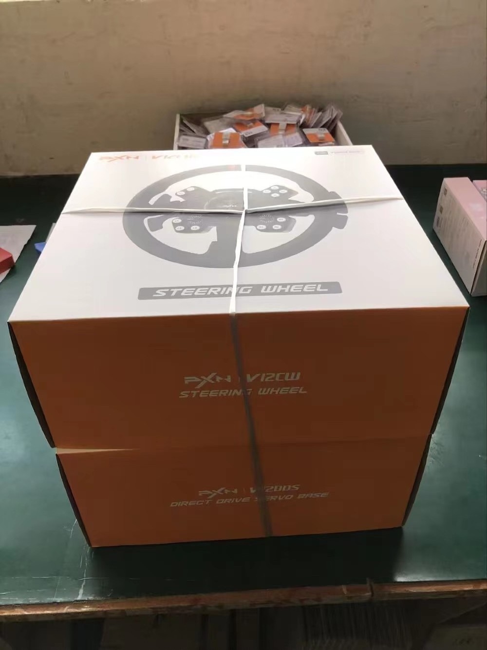 QTY/CTN: 1PCS CTN Size: 43*41.3*39CM Gross Weight: 14.7KG 1 x V12CW Steering Wheel 1 x V12DDS Motor Base 4 x Cable 1 x Stop switch 2 x User Manual
