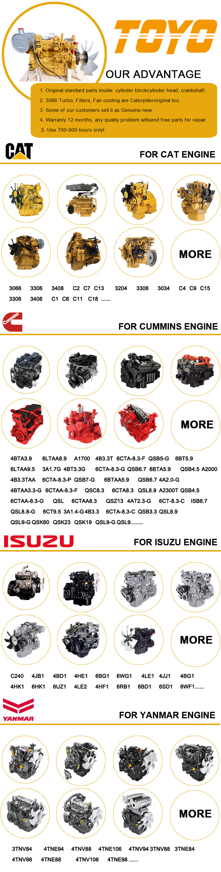 We Offer All Brands Diesel Engine Assembly Model