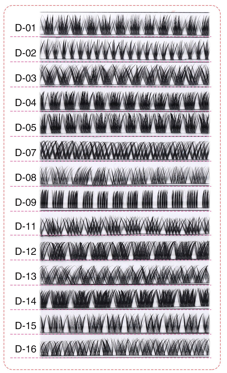 You see our HOT D series DIY lash styles, you can select the styles you like we do.And the below show the DIY lash on eyes which can help you make choice.