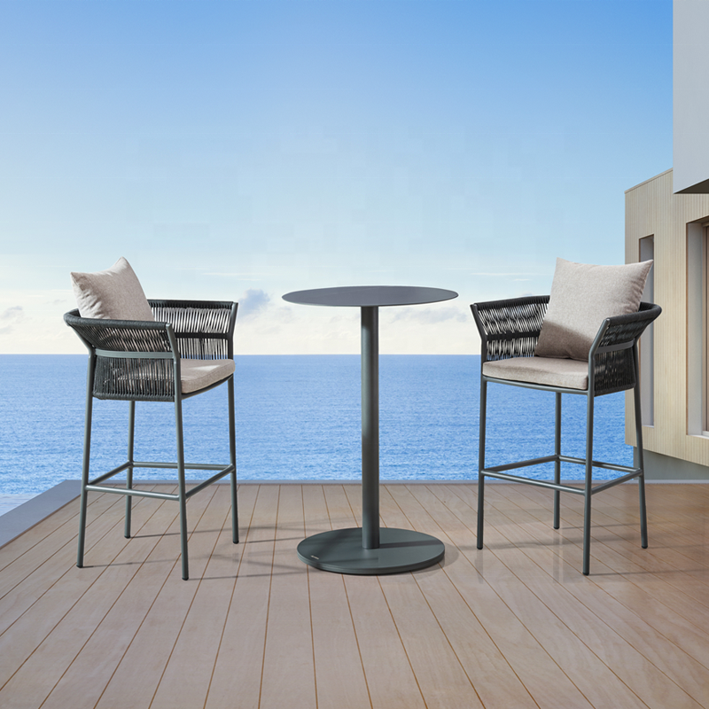 Leisure Garden Bistro Stools Furniture Outdoor Patio High Bar Rope Aluminum Dining Table Chairs Set