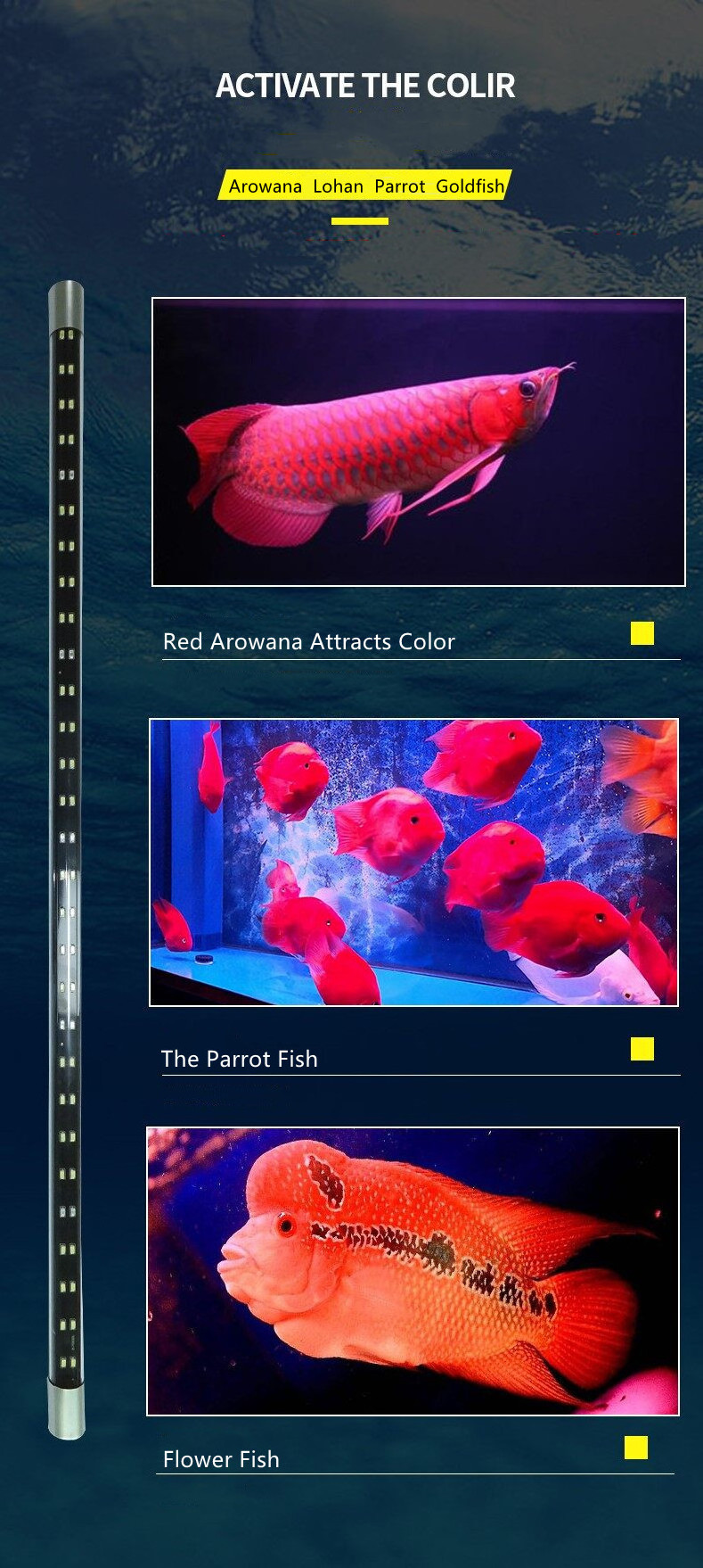 1: Using high-quality 5730 lamp beads, strong penetrating power, good heat dissipation, brighter color, restore the natural beauty of fish