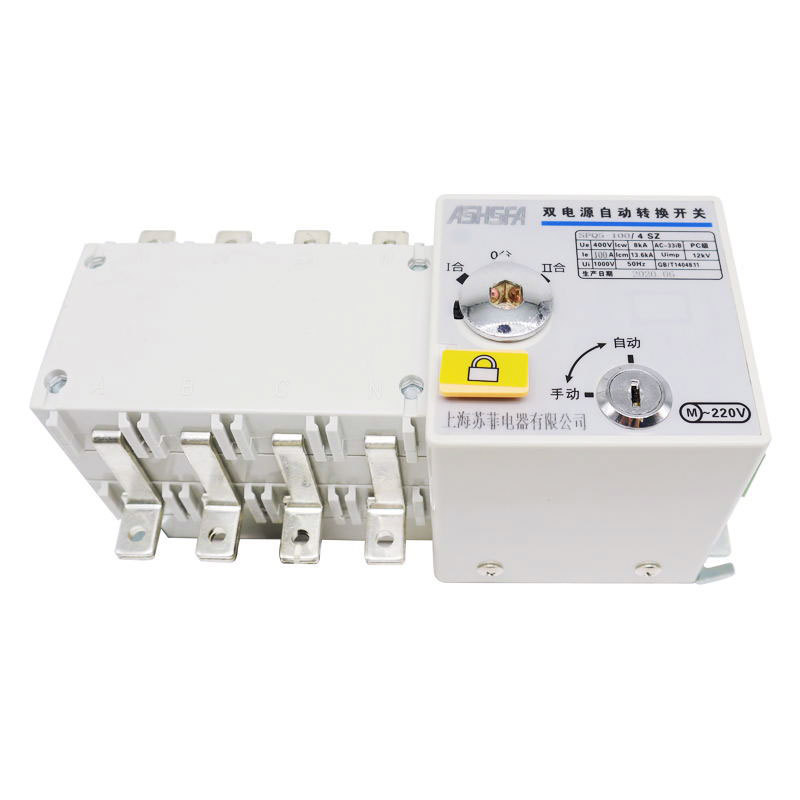 Dual power supply automatic transfer switch (hereinafter referred to as dual power supply), it is suitable for power supply systems with AC 50Hz/60HZ, rated working voltage 220V/380V, rated working current 63A and below. The selection and conversion between the two power sources can be carried out according to the needs. The product has overload, short circuit, and undervoltage protection functions, and also has fire protection, double opening and output closing signal functions.