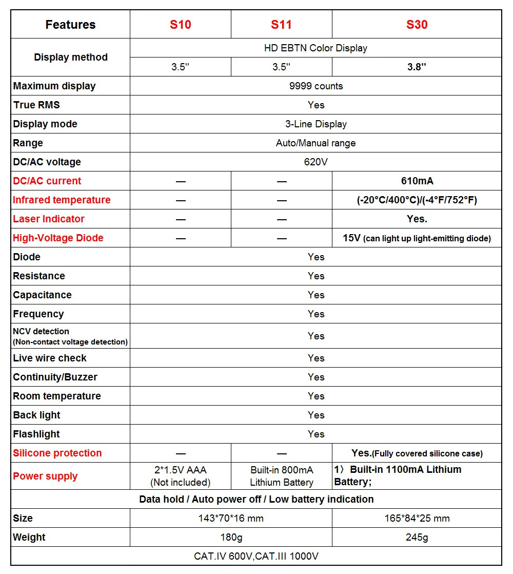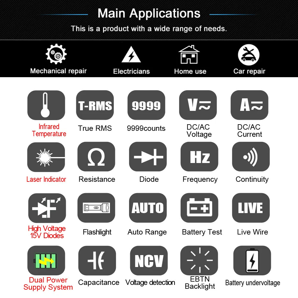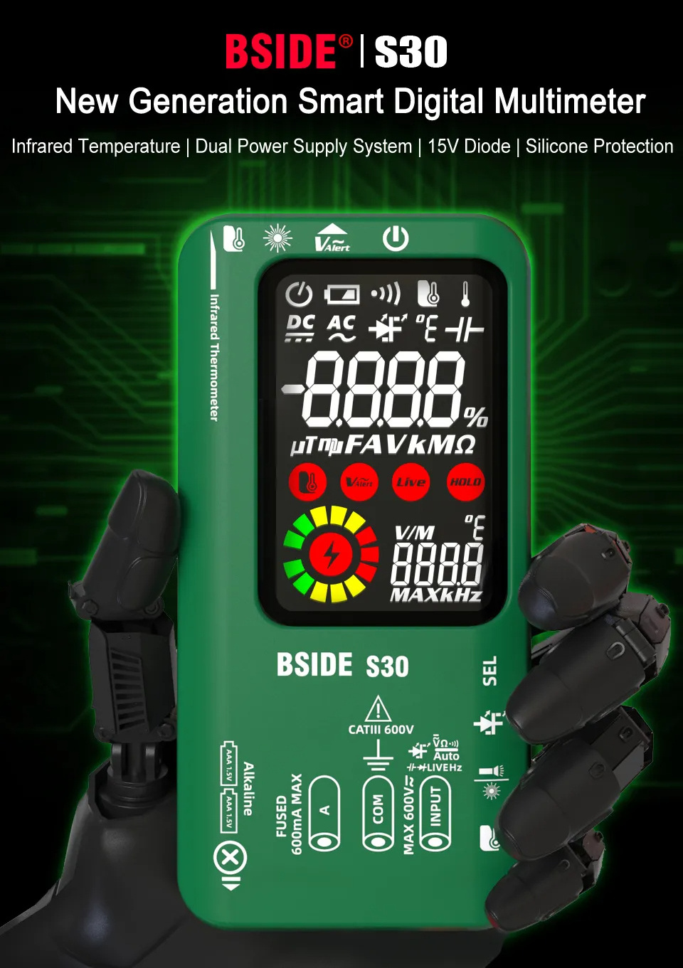 Bside S30 Smart Professional Digital Multimeter 15V Diode Recharge Electronic Tester Infrared Thermometer AC DC Voltage Current