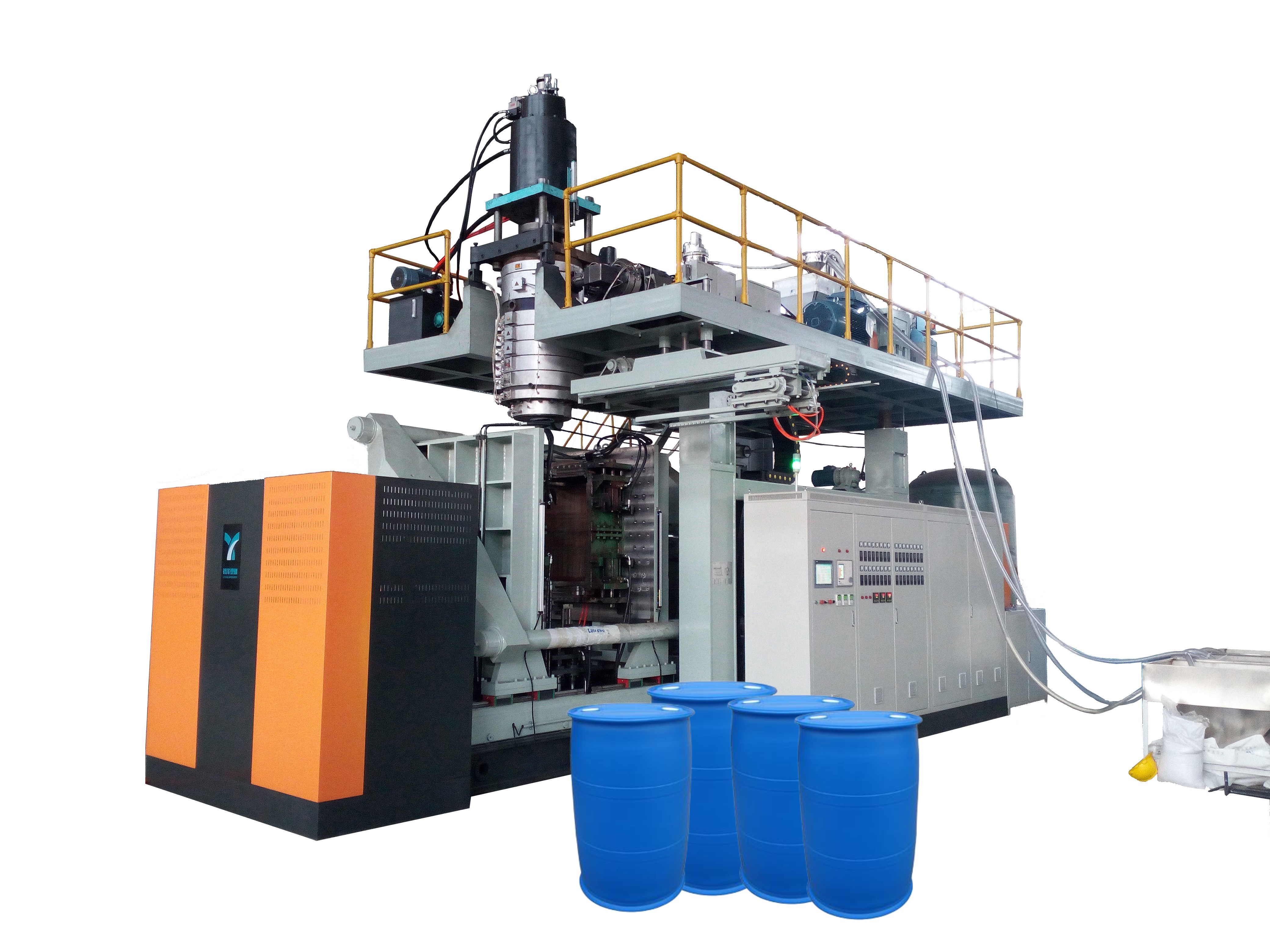 L-ring and Double L-ring drums blow moulding machine .This machine equipped with servo