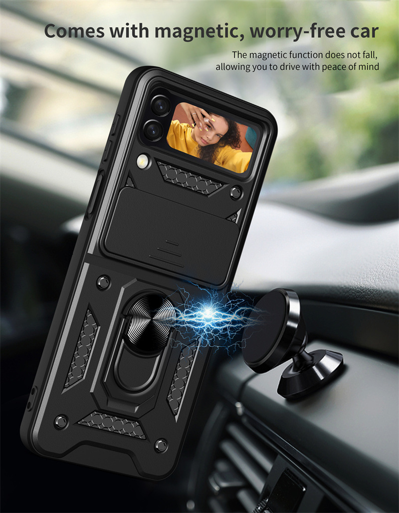 Camera Shield Magnetic Kickstand Armor Case for Galaxy Z Flip 4/Flip 3