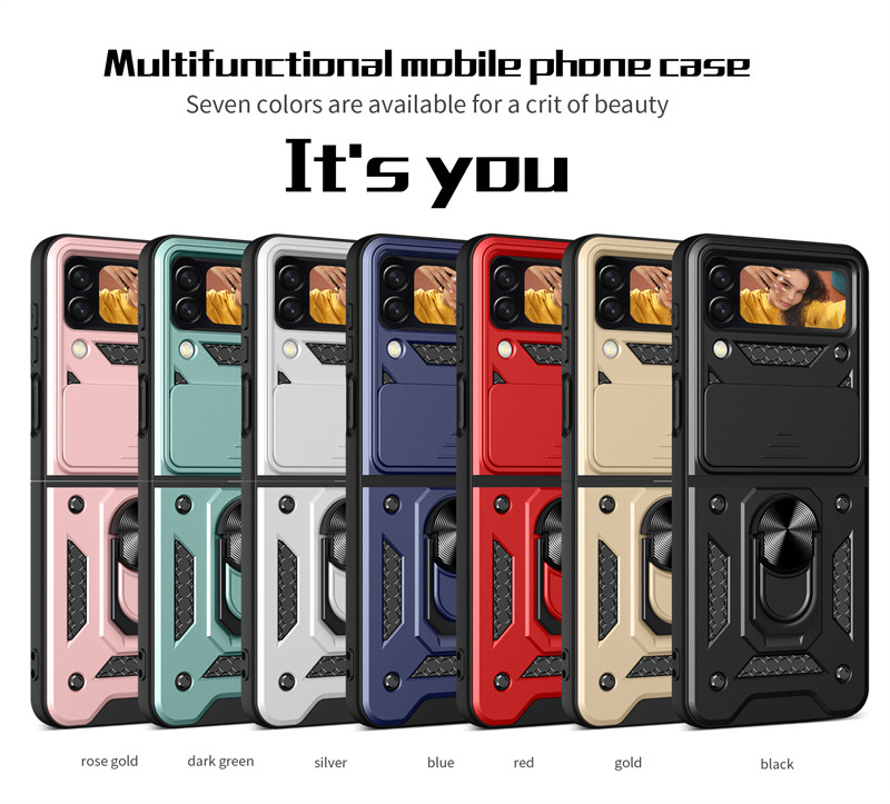 Camera Shield Magnets Kickstand Armor Case for Galaxy Z Flip 4