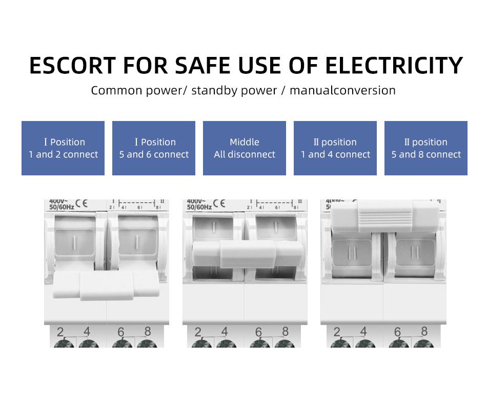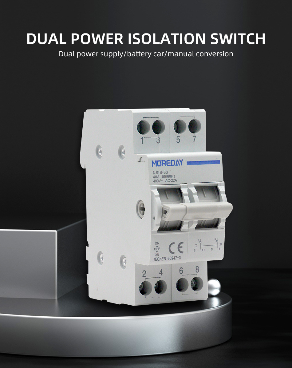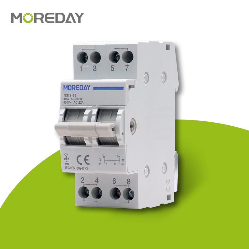 High Quality Changeover Switch 2P 63A 230/400VAC Modular Dual Power Manual Transfer Isolator Switch Din Rail Installation
