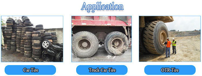 Waste rubber tire powder recycling machine consists of tire broken machine host and auxiliary machine two parts. Auxiliary equipment: Hook Wire Drawing Machine, Tire Cutter Machine(Optional according to tire size), Conveyor, Magnetic Separator Machine, and other components.
