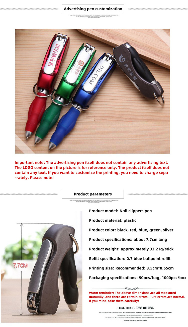 Hot Selling Factory Custom Logo Creative Folding Ballpoint Pen And Nail Clippers