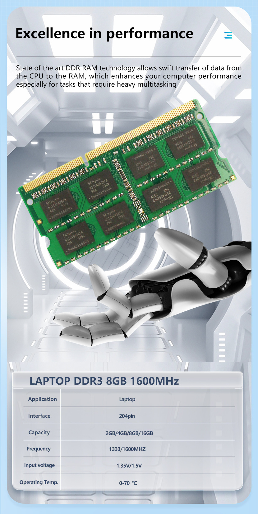 A: We offer a range of products including 2.5-inch SATA, mSATA, M.2 NGFF, M.2 NVME, USB Flash Drive, and DDR RAM.