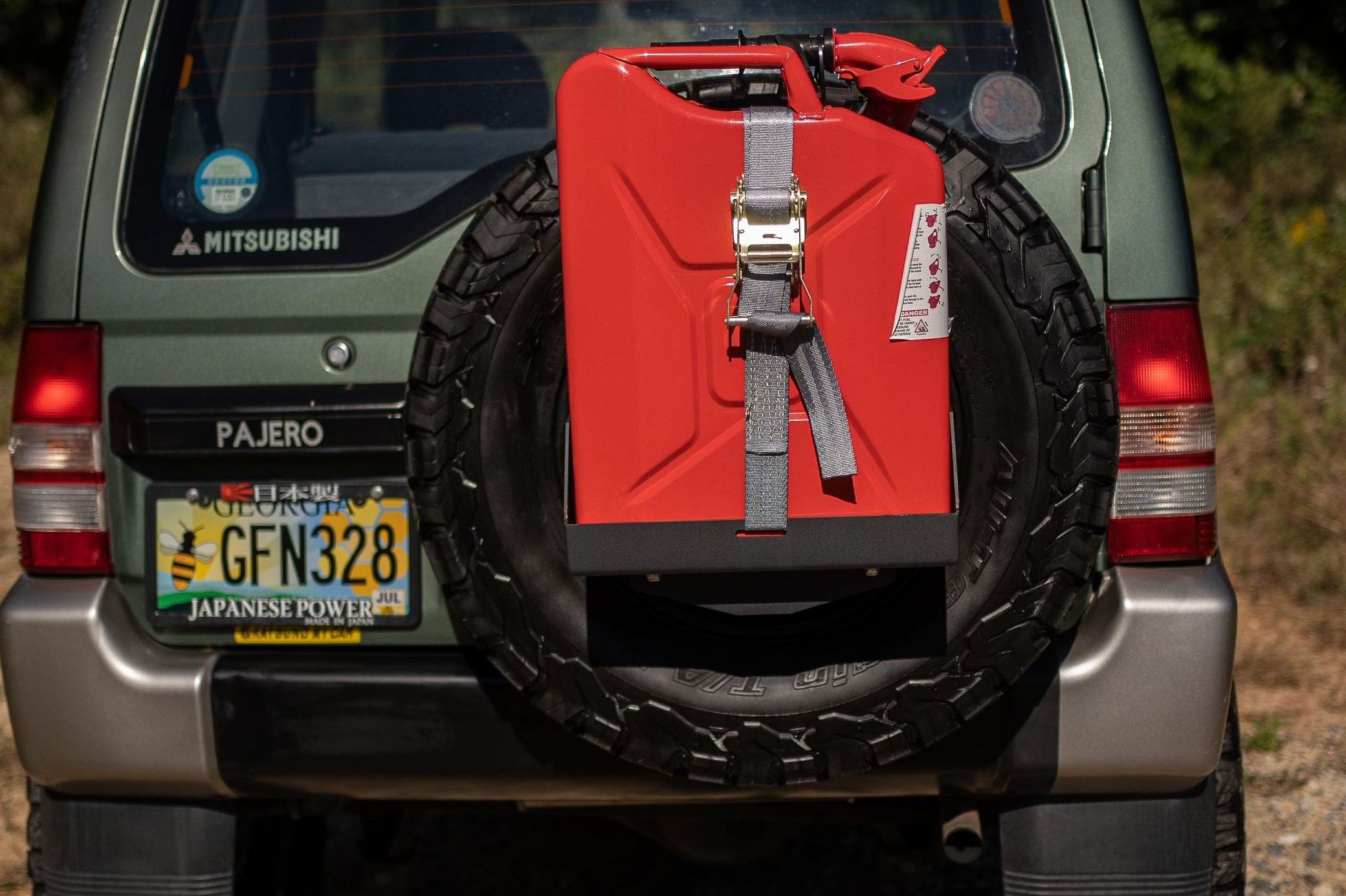 * Spare tire-mounted jerry can holder (with jerry cans)