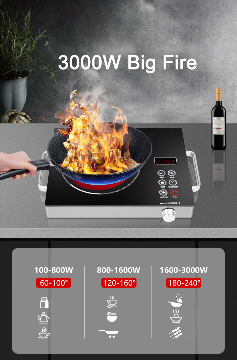 National patent oversized shaped copper coil,instant heating and the panel keep 60℃ constant temperature,uniformly strong firepowe