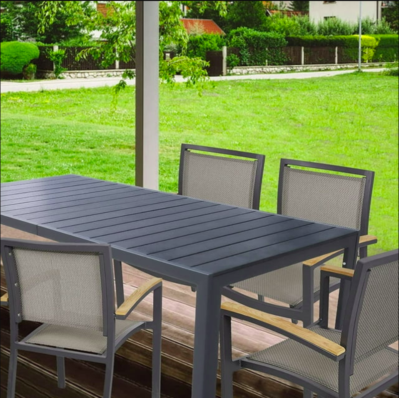 BH-Patio Dining Set Aluminum Frame Outdoor furniture PS Finish Tabletop Heavy Duty Furniture, Rectangular Tea Table for Indoor