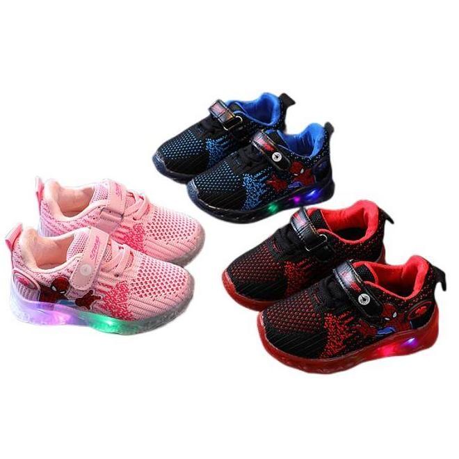 Autumn New Children's Shoes Fly Woven Bright Lights LED Sports Sneakers Cartoon Superman Kids Casual Shoes Mesh Breathable