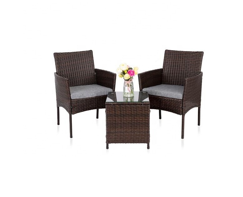 Outdoor Garden Furniture Sets 3 Pieces PE Rattan Patio Porch Furniture