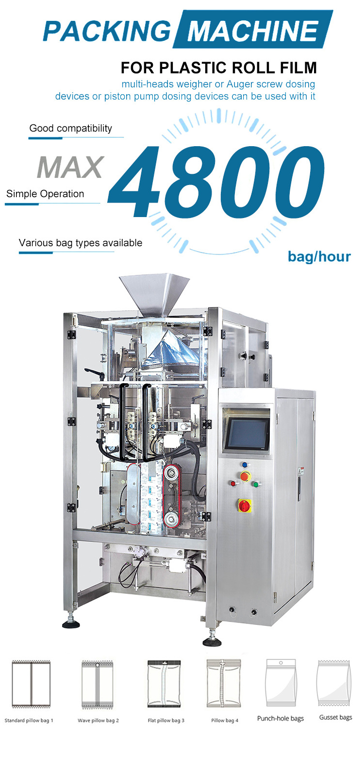 5. Bag-making, filling, sealing,cutting, counting, thermal pressing of batch number can be achieved automatically and straightly.