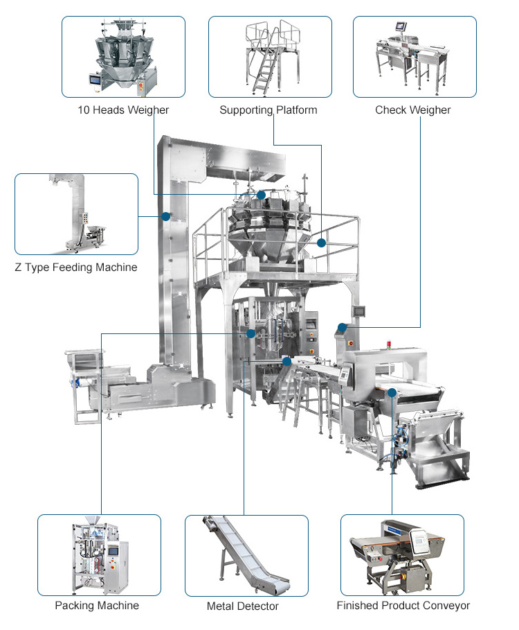 Automatic Packing Machine 10 Heads/14 Heads/16 Heads Weigher /Multihead Weigher For Packing Candy Snack Chips Nuts