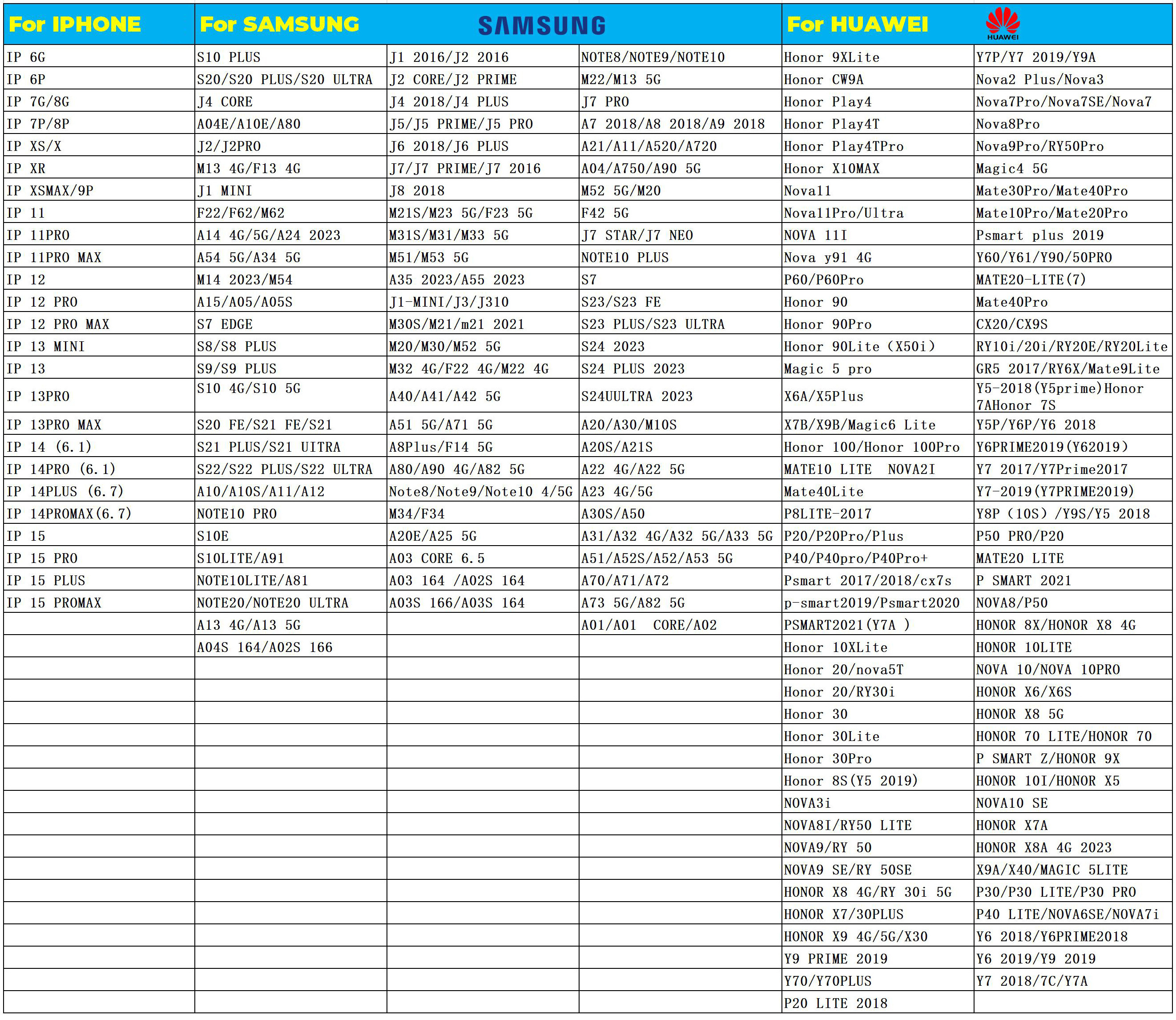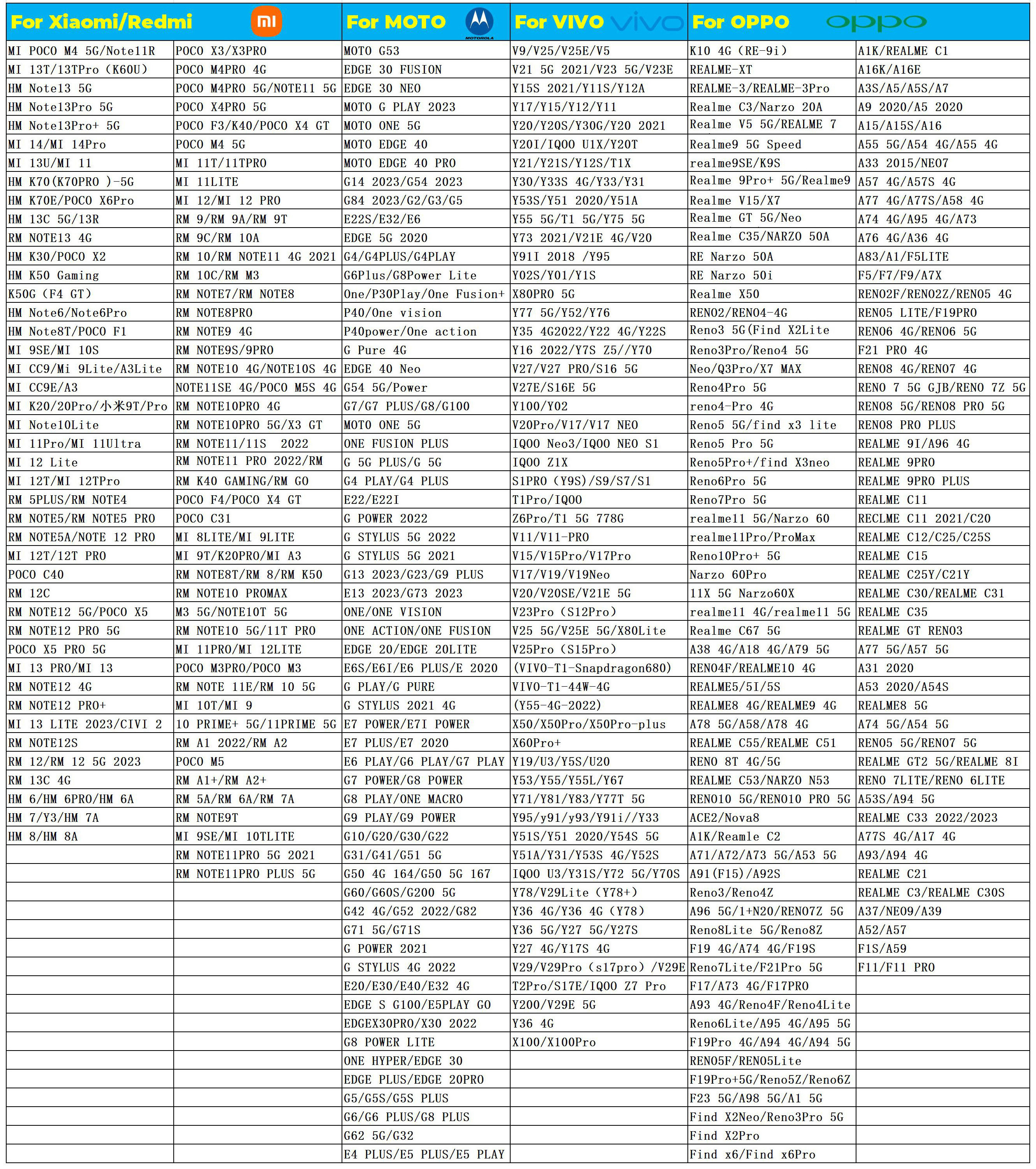 For samsung,Huawei,Vivo,Oppo,Xiaomi