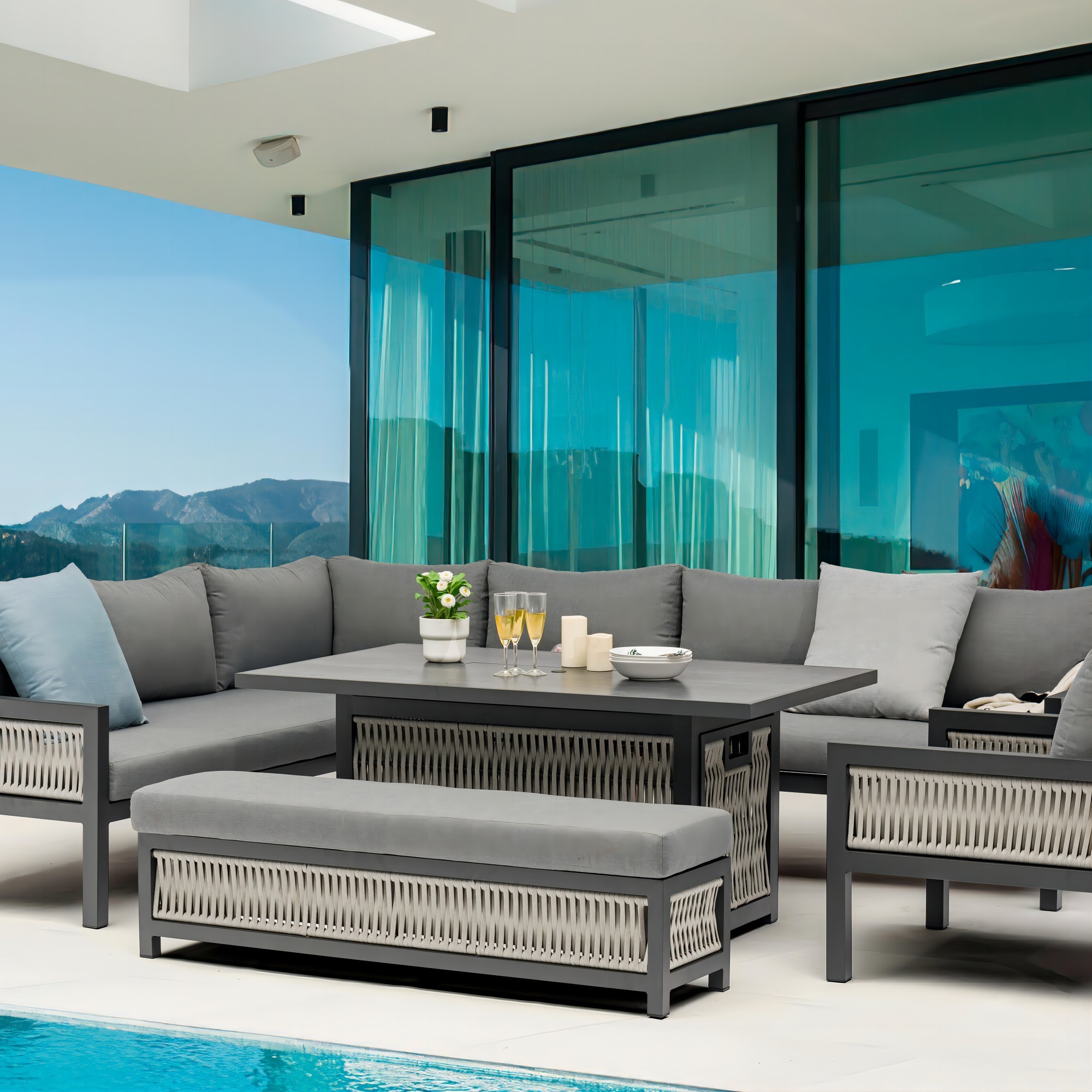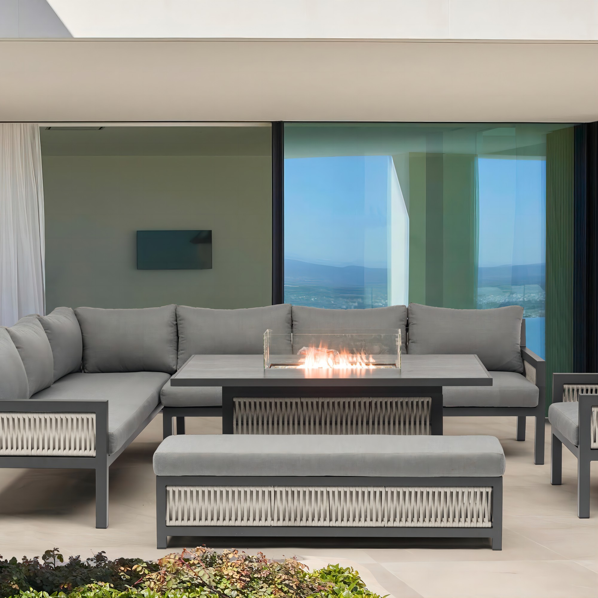 luxury Aluminum garden sofa outdoor garden rope furniture set rattan Aluminum fire pit table