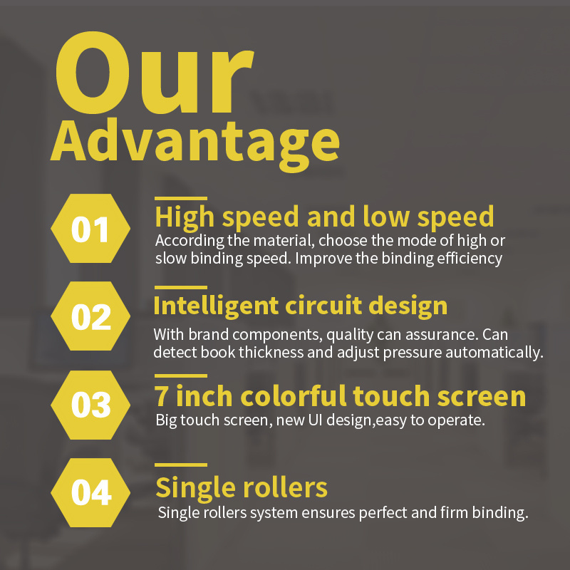 is one of the leading companies in Post-press equipment field with more than 15 years experience,Located in Hangzhou city, Zhejiang province ,China.Our main products are glue binding machines,paper cutters,laminators and etc.Our independent research and development of the automatic wireless glue binding machine ,cutting machine and laminating machine such as a series of post-press equipment ,category complete, perfect function ,stable performance , excellent quality,moderate price, and on the basic of continuous innovation we will continue to make new machines.