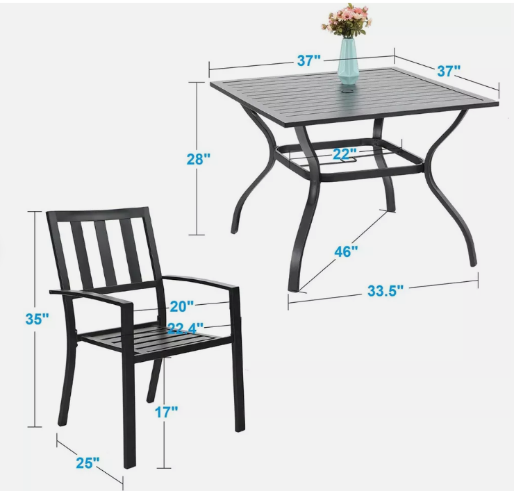 4*chair:35" W x 25" D x 22.4" H |