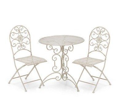 Classical White Metal Garden Outdoor Folding Patio 3 pieces Furniture 1Table 2 Chairs Bistro Set