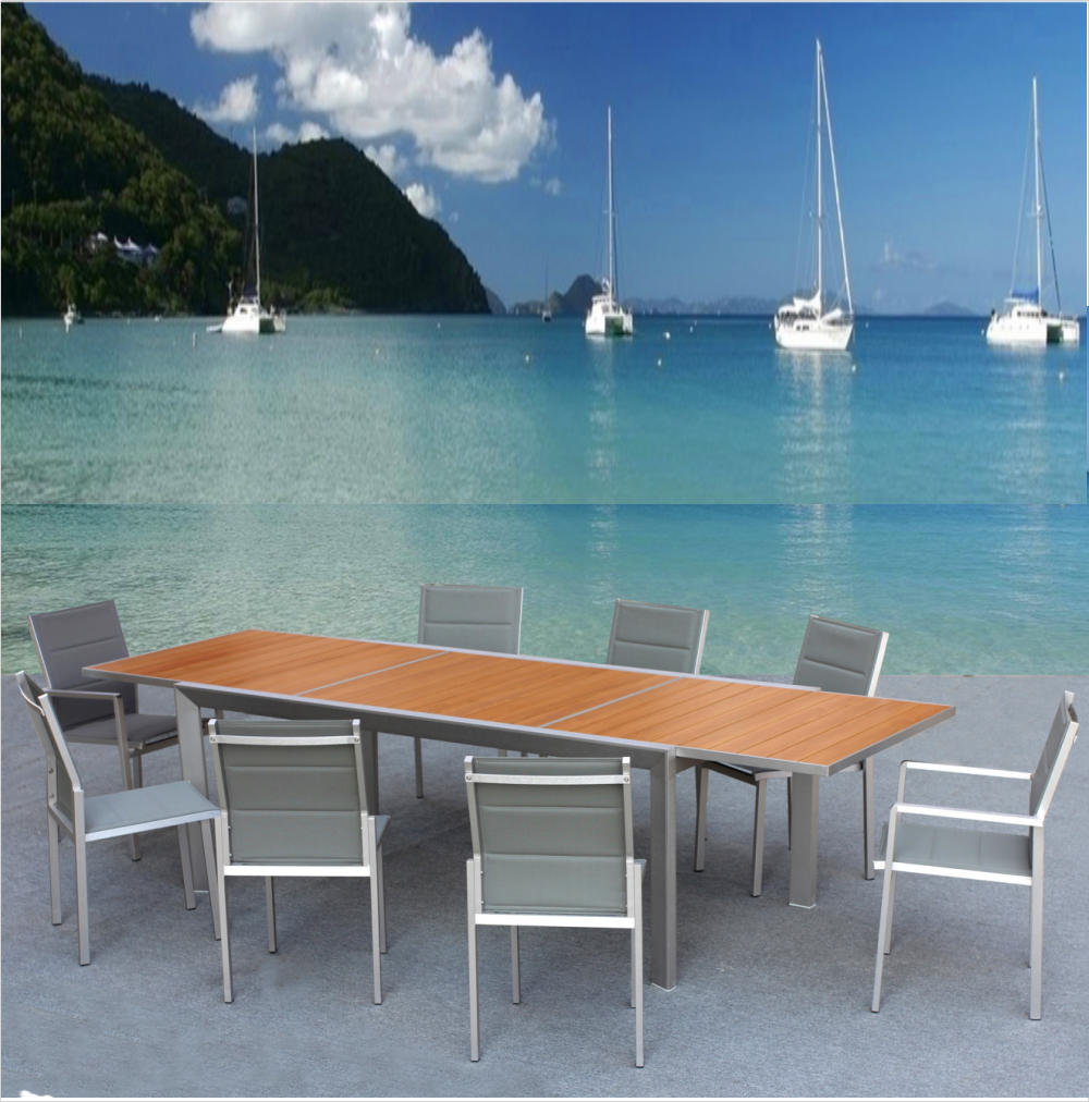 Hotel Leisure Metal Aluminium Brushed Sling Chairs And Table Set