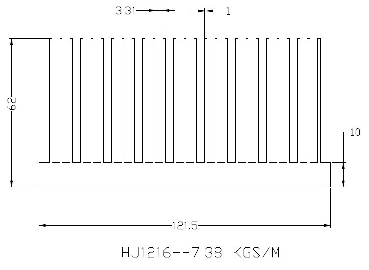 Aluminum heatsink 121.5(W)*62(H)*400(L)mm