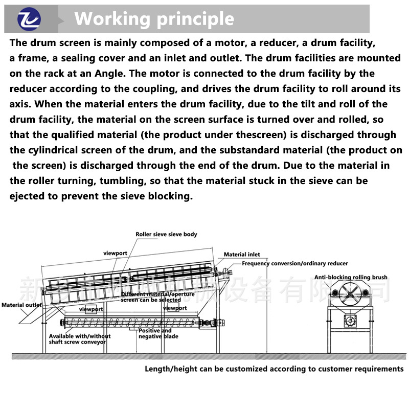 Trommel screen is a kind of mechanical equipment commonly used for screening and grading powder materials. It uses a high-speed rotating screen and inertial force to separate and screen powder materials. Its main function is to remove impurities and fine particles in the particles to achieve the purpose of improving product quality and reducing production costs.