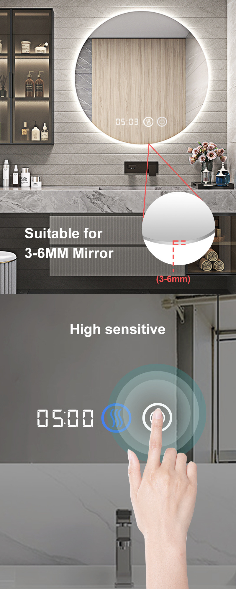 touch sensor for LED mirror