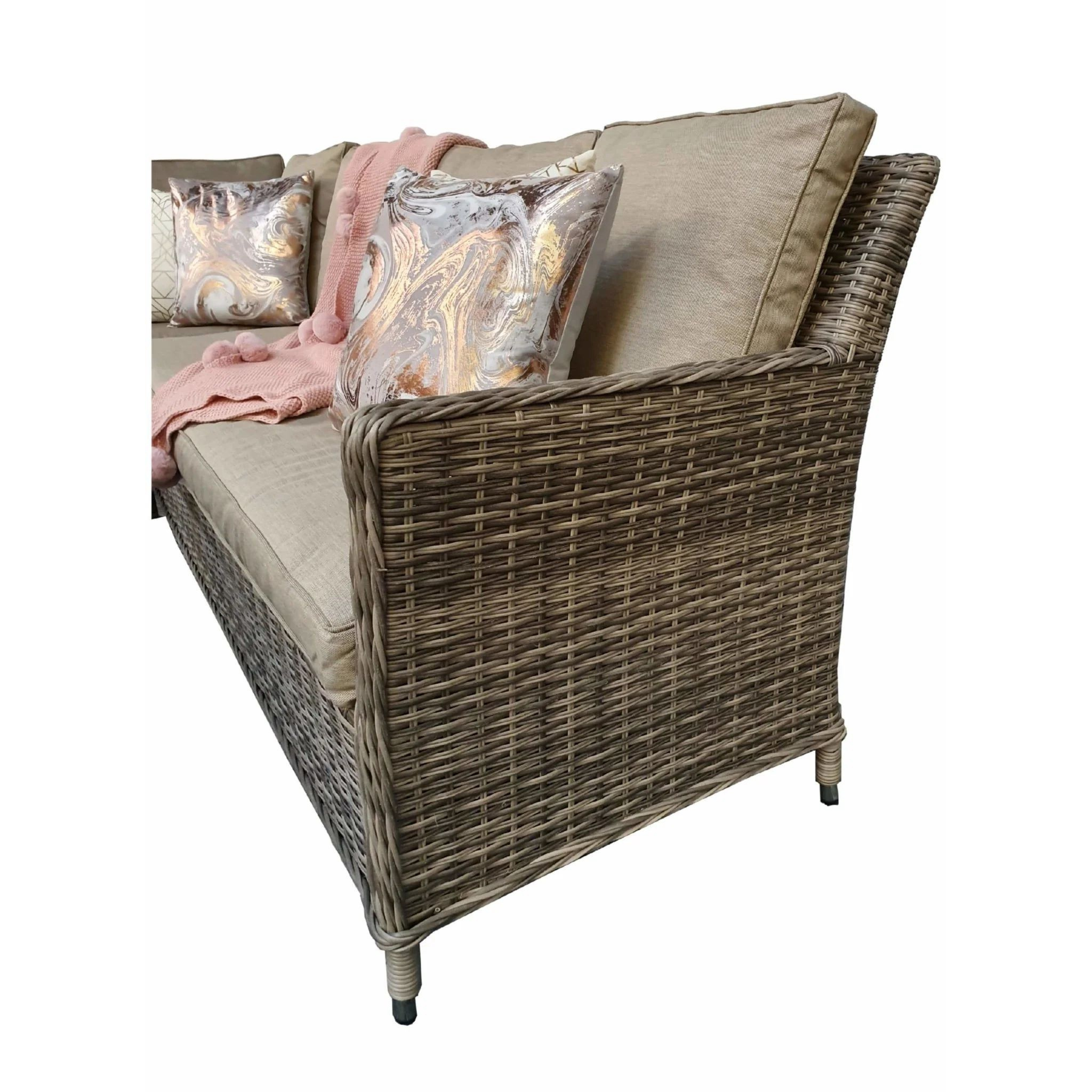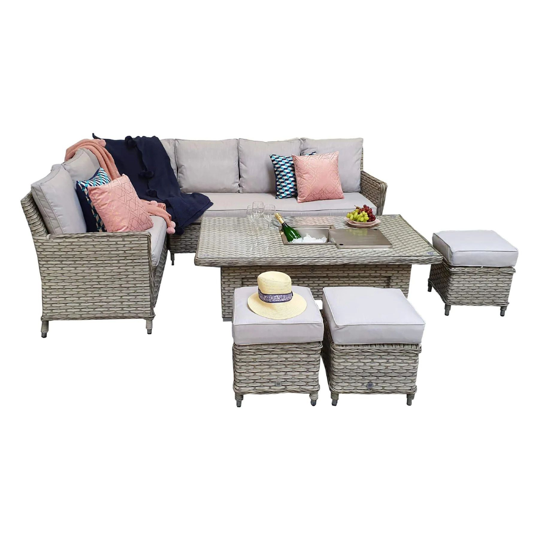 Outdoor Rattan Garden Furniture Corner 5 Seater Sofa Set With Cushions & Ice Bucket Table