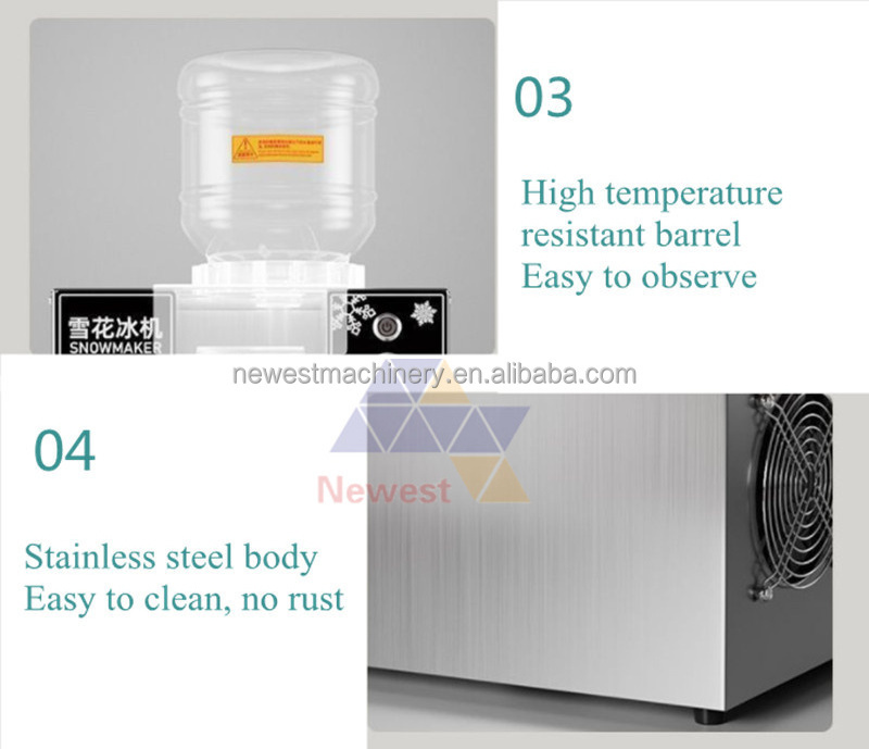 The bingsu snow ice shaver machine is an ice dessert machine that makes ice shavings or fine ice and sweet condiments or syrup.The snow ice machine has intelligent operation system, simple operation, strong applicability, simple machine mechanism, and health and safety.