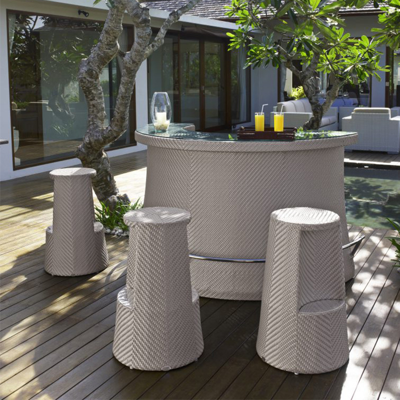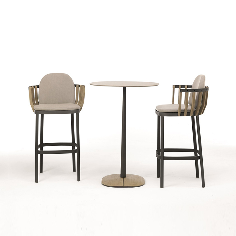 Garden patio high quality luxury wood 2 bar chairs table outdoor bar table set