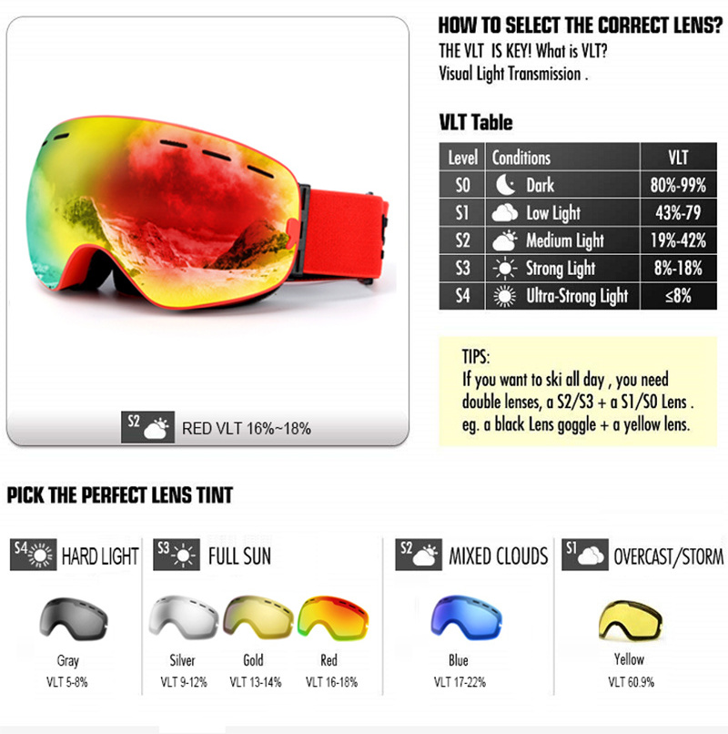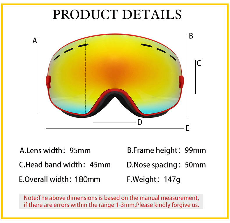Large spherical ski goggles