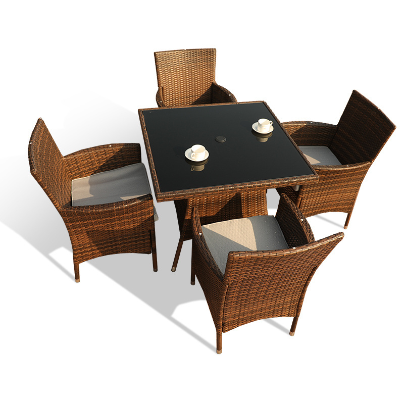 All Weather Outdoor Furniture Set 5 Pieces Wicker Patio Dining Set with Cushioned Rattan Sofa Chairs and Tempered Glass Table